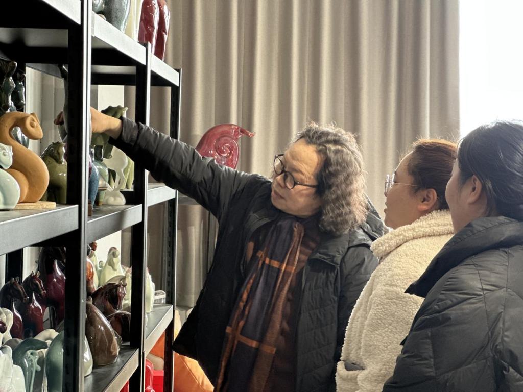 活动伊始,高级工艺美术师杨庆平老师带领大家参观工作室展品,详细介绍了陶瓷的悠久历史与发展脉络,对各类陶瓷精品进行专业解读。重点讲解了学校代表性作品“鱼化龙”的文化内涵,阐释其源自黄河“鱼跃龙门”的传说,象征着奋进蜕变、追求卓越的精神,寄托着学校对师生成长的美好期许。